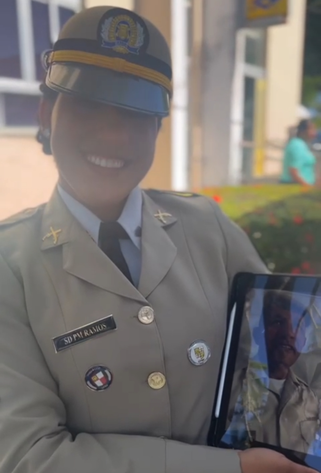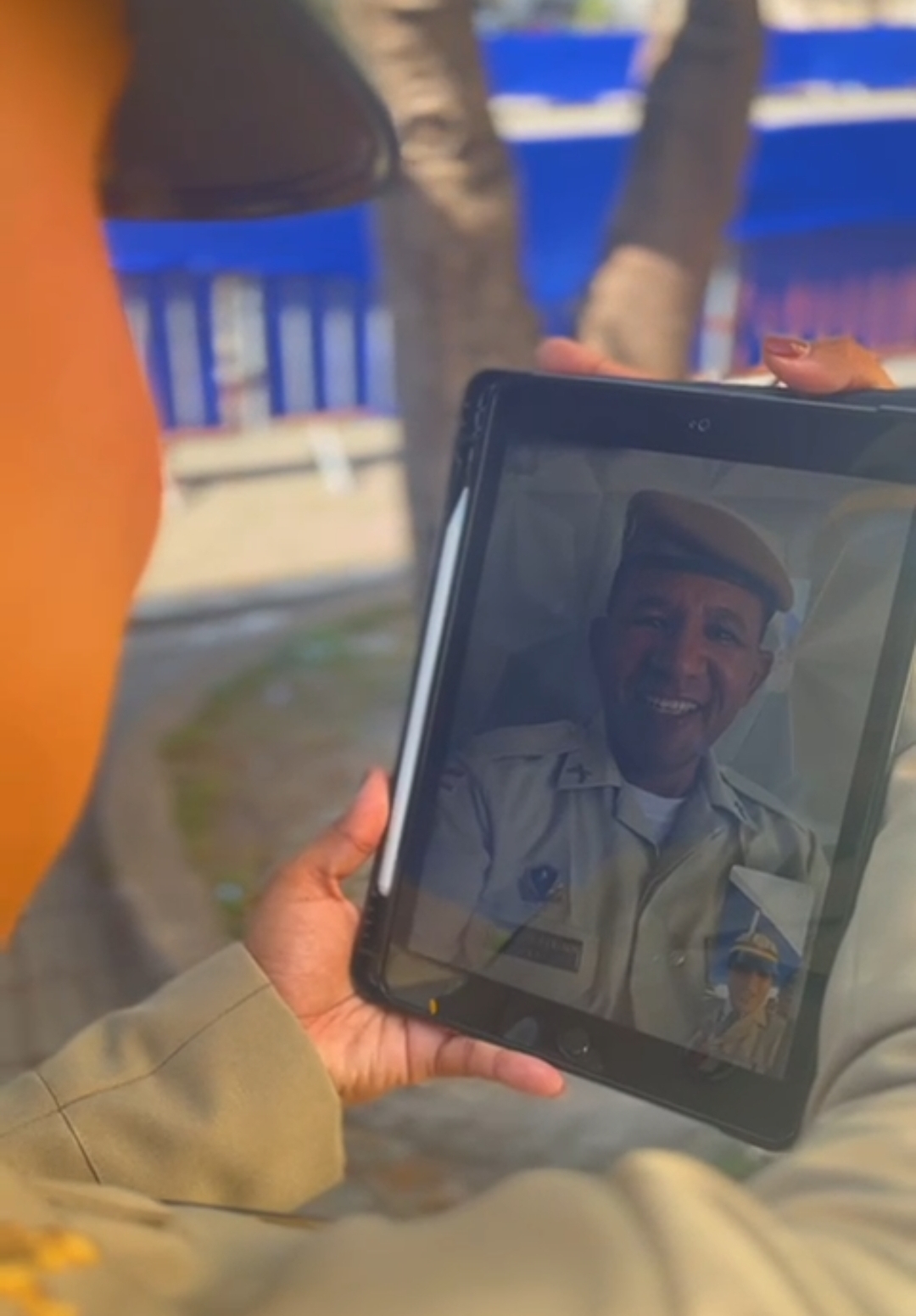 Do outro lado da tela, ele viu sua filha de pé, em posição de respeito e orgulho. A chamada foi breve, mas informações de significado. Mais tarde, ao assistir às imagens da cerimônia gravadas pela família, o sargento não conteve a emoção.