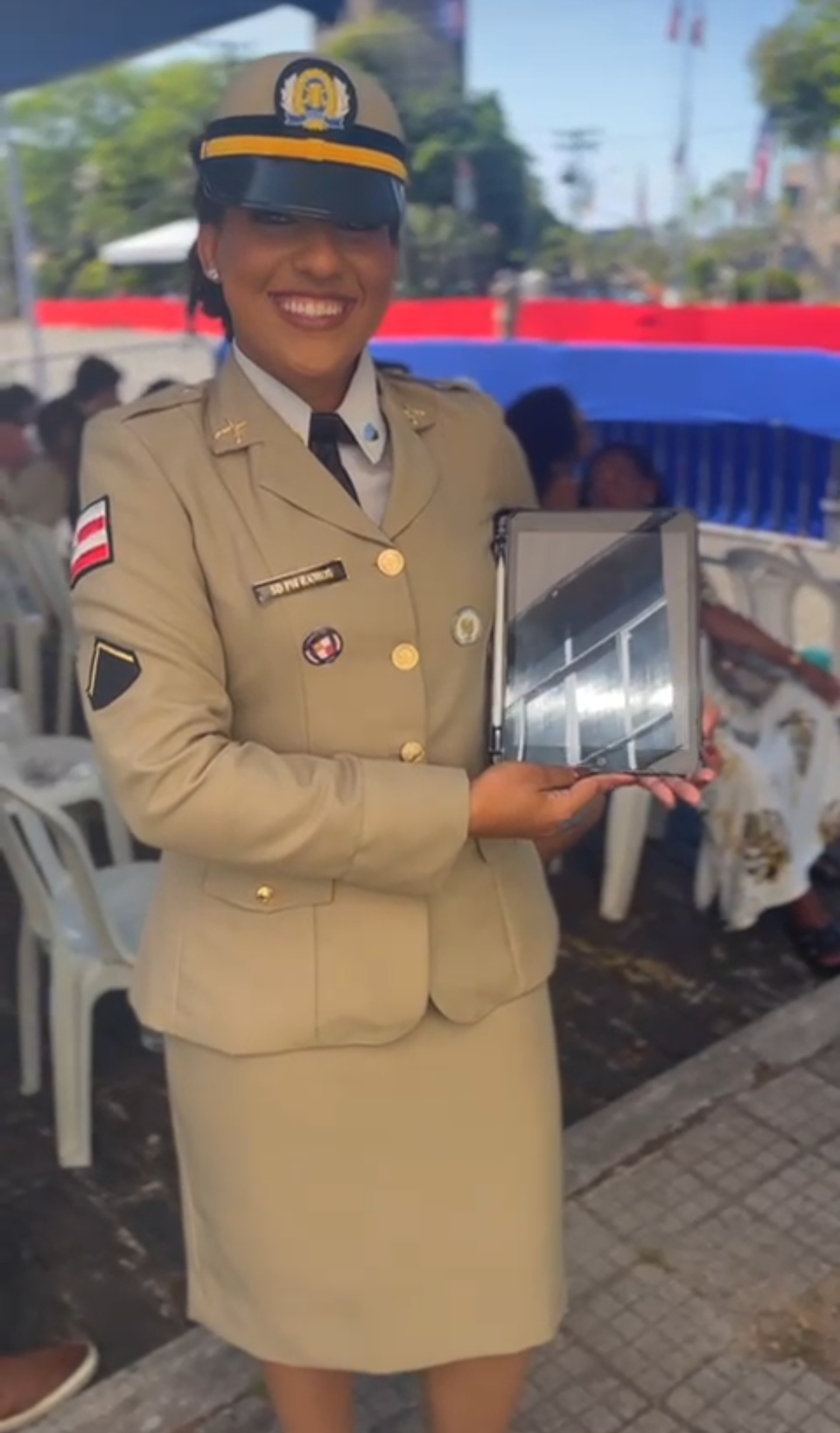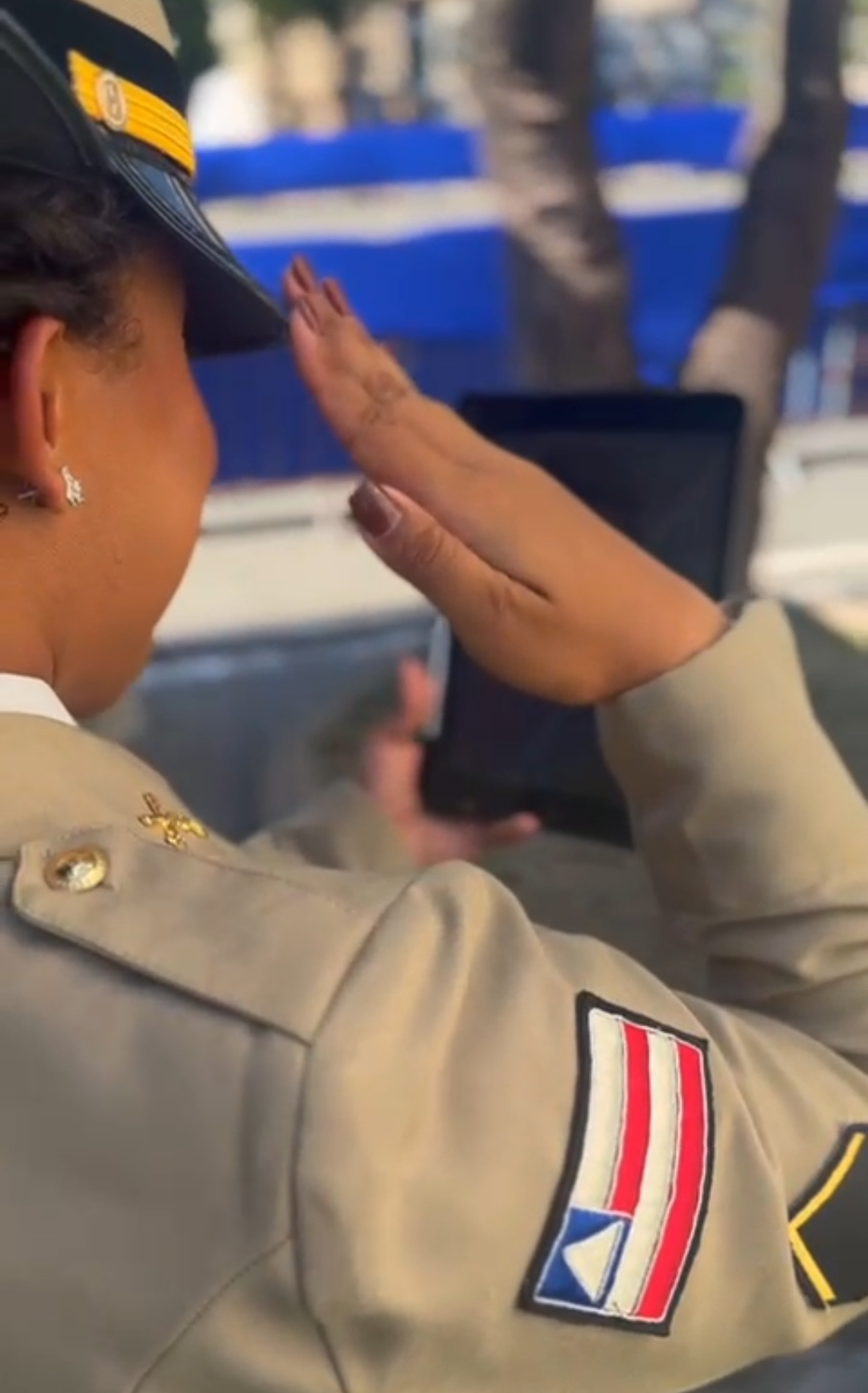A ideia veio de Cláudia, esposa de Josafá, que, durante a cerimônia, fez uma videochamada e pediu ao marido que se preparasse. “Meu pai, tem como o senhor colocar a farda? Rápido, rápido! Consegui esse momentinho!”, insistiu a filha, enquanto aguardava ser chamada ao pódio.