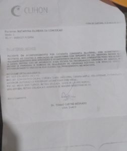 Milena informou que a criança vinha sendo acompanhada por uma clínica em Feira de Santana e que por causa da Pandemia, foi suspenso o atendimento e ela não consegue marcar a cirurgia que precisa ser feito até os quatro anos de idade, nem em Feira de Santana e nem na capital baiana Salvador. Kataryna já vai completar três anos o que tem deixado a família preocupada.