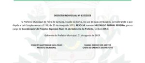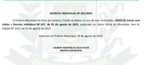 Os resultados das eleições do diretório do PSDB de Feira de Santana, começam a fazer estragos entre lideranças. A perseguição está evidente e o recado foi dado. O prefeito Colbert Martins MDB, demitiu Helenildo Sobral, mais conhecido no meio político como Gringo de Jaíba.