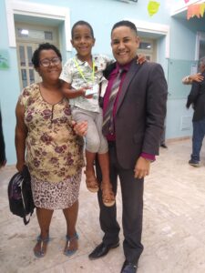Na foto, Ron está ao lado de Enzo, criança especial que é assistida pela APAE e que está em casa por causa da paralização das atividades da entidade.