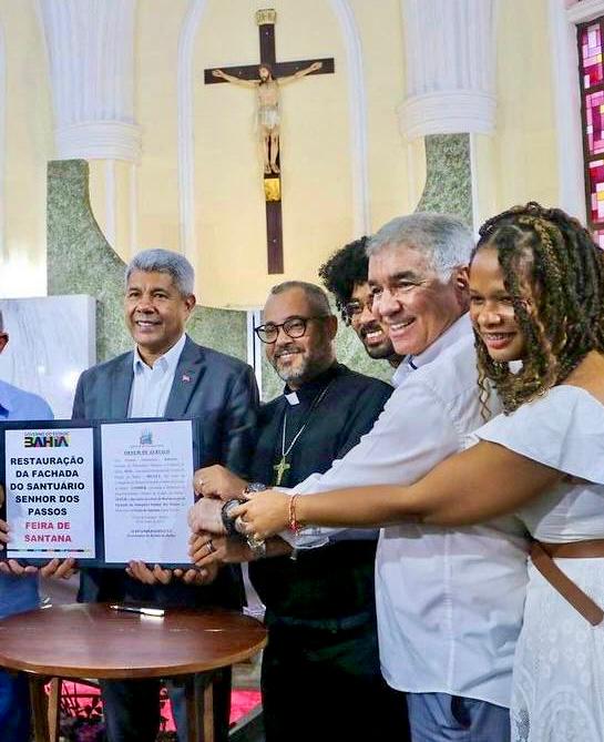 O deputado federal Zé Neto (PT) agradeceu, nesta quarta-feira, 28, à Secretaria de Cultura da Bahia e ao Governo do Estado por darem início às obras de restauração da fachada arquitetônica do Santuário Arquidiocesano Senhor dos Passos, em Feira de Santana. A ordem de serviço, cujo o investimento é de R$ 1,5 milhão e tem prazo de conclusão de seis meses (novembro), foi assinada pelo governador Jerônimo Rodrigues (PT), durante cerimônia realizada no próprio Santuário.