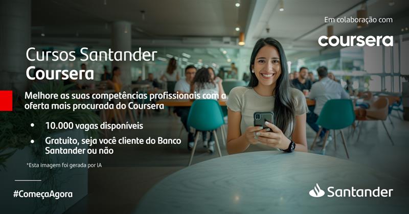 O Santander firmou uma parceria com a plataforma global de aprendizagem online Coursera, que irá oferecer 10 mil bolsas gratuitas para acessar todo o conteúdo de treinamento da plataforma por um ano. Os contemplados poderão se candidatar a uma das vagas em cursos relacionados com marketing e comunicação, soft skills, critérios de sustentabilidade ESG (ambiental, social e governança), ciência de dados ou cibersegurança, bem como certificações profissionais da IBM, Microsoft, Google ou AWS, entre outros. As inscrições podem ser feitas até 19/03/205 na plataforma Santander Open Academy: https://app.santanderopenacademy.com/pt-BR/program/coursera-professional-certifications