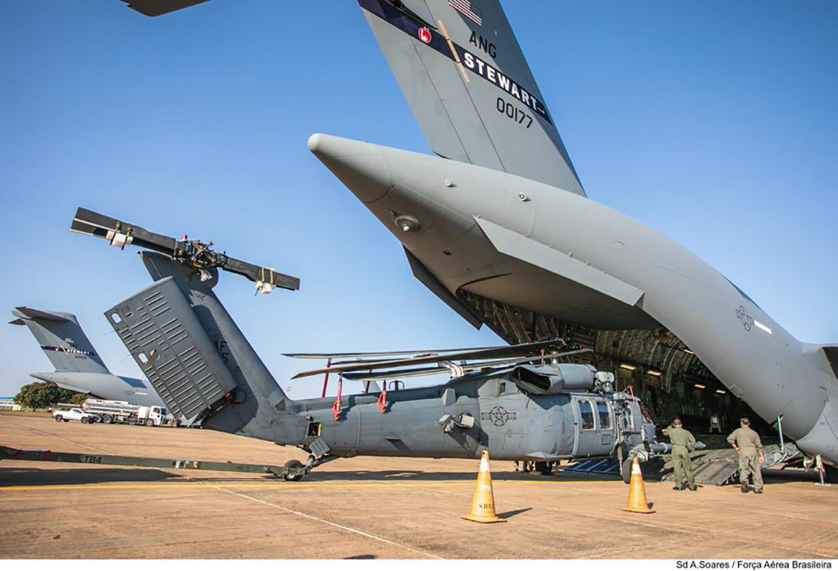 A participação da NY ANG costuma incluir aeronaves como o Lockheed Martin HC-130J Combat King II — uma versão modificada do Hércules para missões de resgate — e o helicóptero Sikorsky HH-60W Jolly Green II, variante do Black Hawk adaptada para operações de busca e salvamento em zonas de combate. Os jatos C-17 são responsáveis por transportar os helicópteros e os equipamentos de apoio ao Brasil, como mostra a foto acima, do último exercício, em 2023.