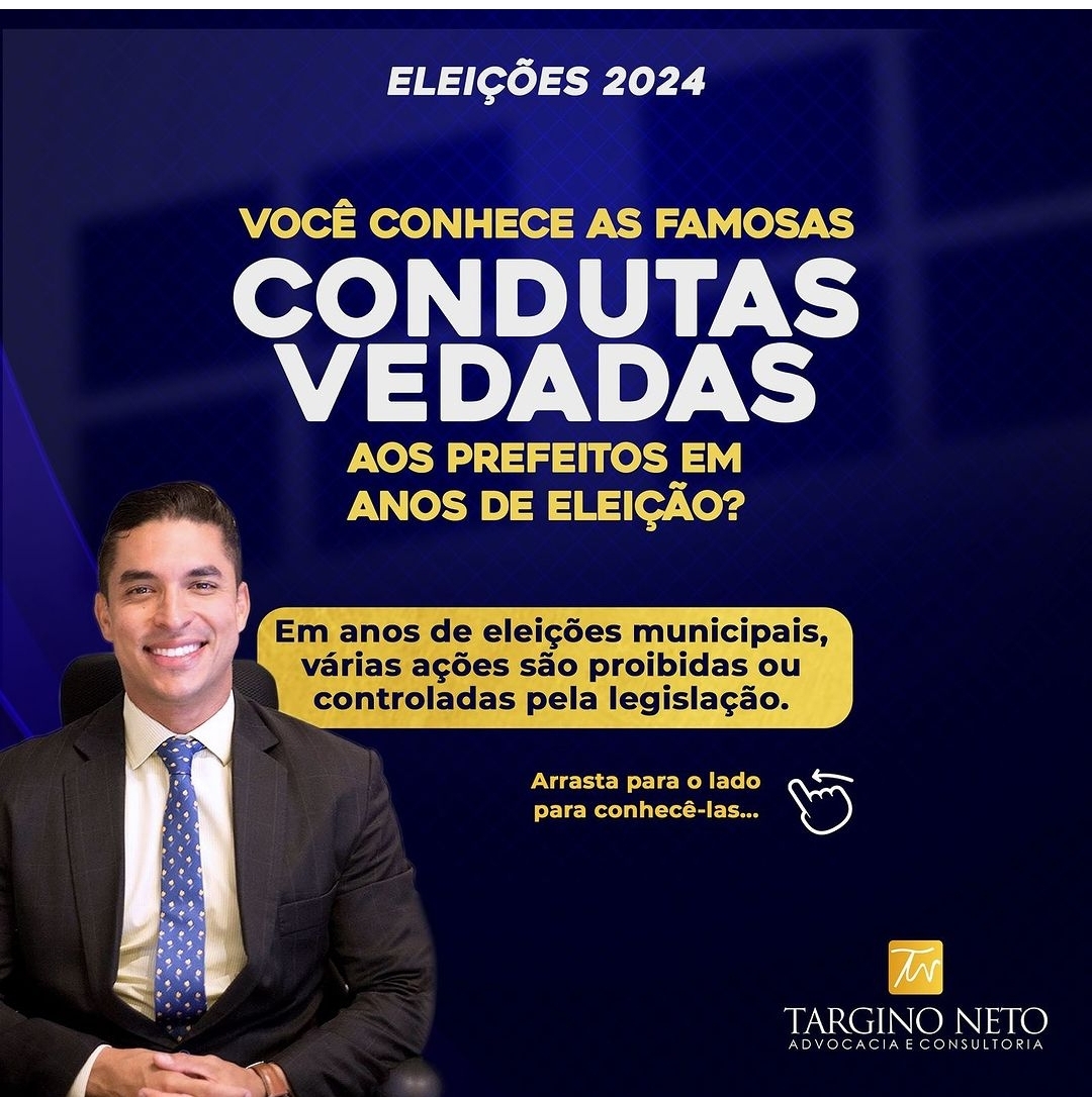 O advogado especialista em direito eleitoral, Targino Neto, destaca a importância de se estar atento às “Condutas Vedadas” durante o ano eleitoral. Esse conjunto de ações é proibido por lei devido ao seu potencial de interferir na integridade e no equilíbrio da disputa eleitoral, assegurando igualdade entre os candidatos.
