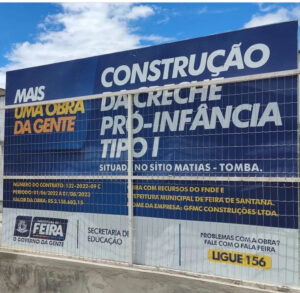 Se não fosse o descaso do Poder Executivo Municipal com o erário, os sonhos dessas mães e crianças, a creche-escola já teria sido entregue à comunidade desde 2015, como consta informativo na página oficial da Prefeitura Municipal de Feira de Santana, com data de 10/03/2015.