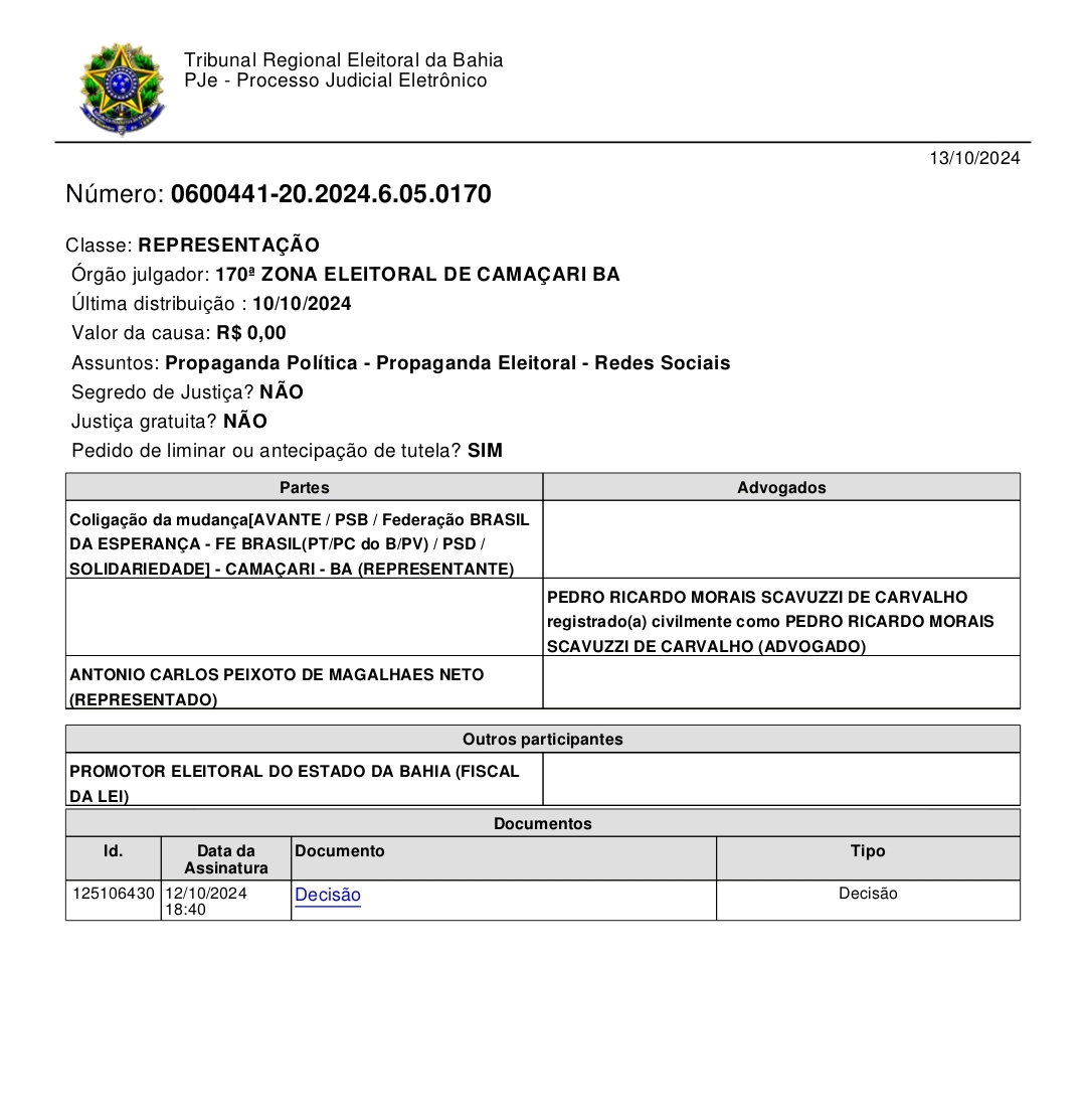 Além de exigir a remoção imediata do post, a sentença impõe a ACM Neto uma multa diária de R$ 5 mil em caso de descumprimento. A condenação deixa claro que a Justiça Eleitoral não tolera a disseminação de mentiras e ataques infundados para manipular o eleitorado.