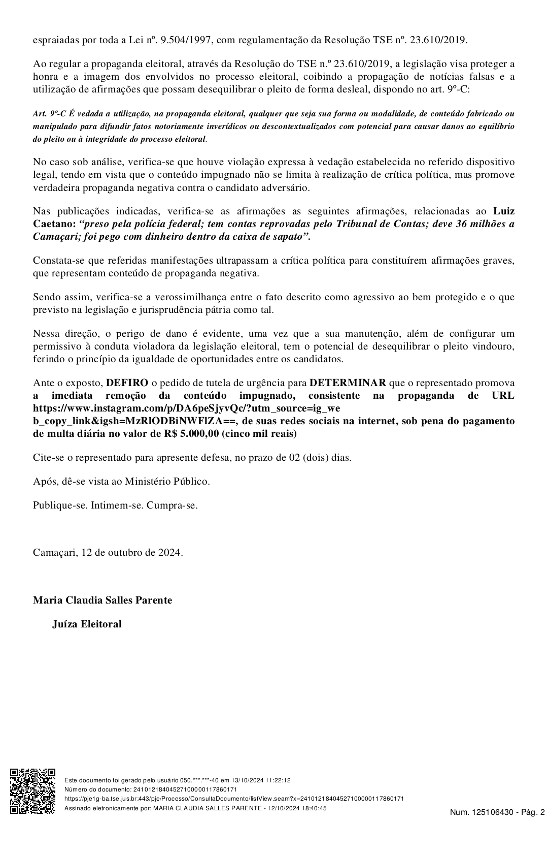 “A manutenção dessas inverdades não apenas desrespeita a legislação eleitoral como também pode causar danos irreversíveis ao pleito”, frisou a juíza em sua decisão.
