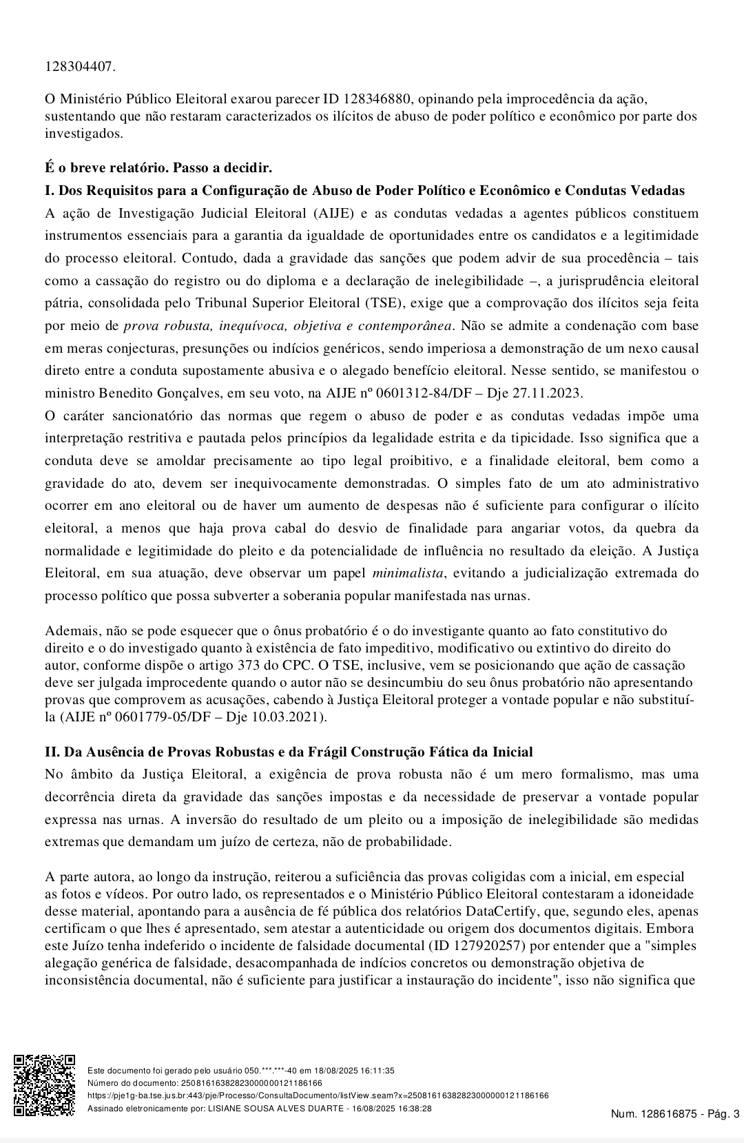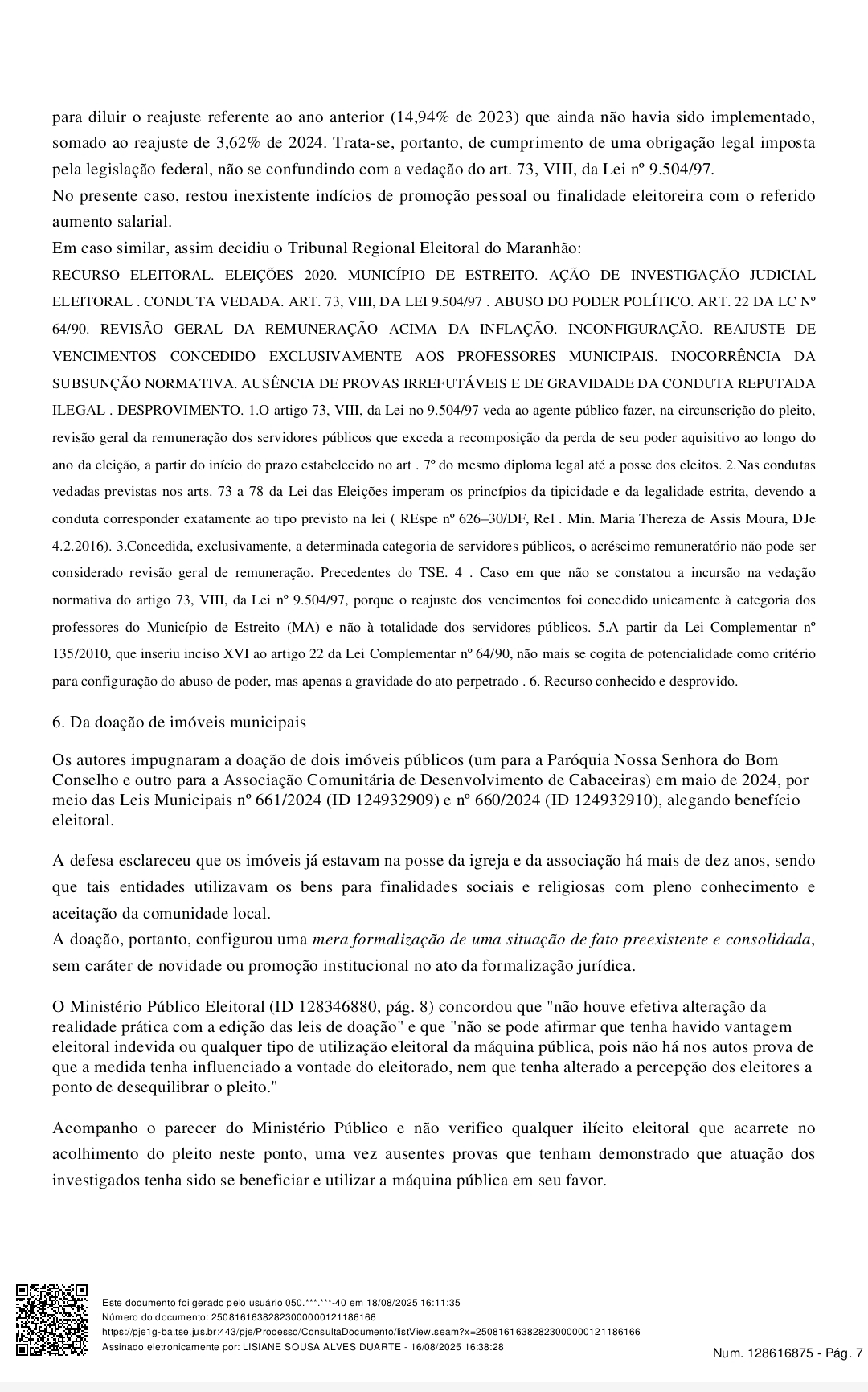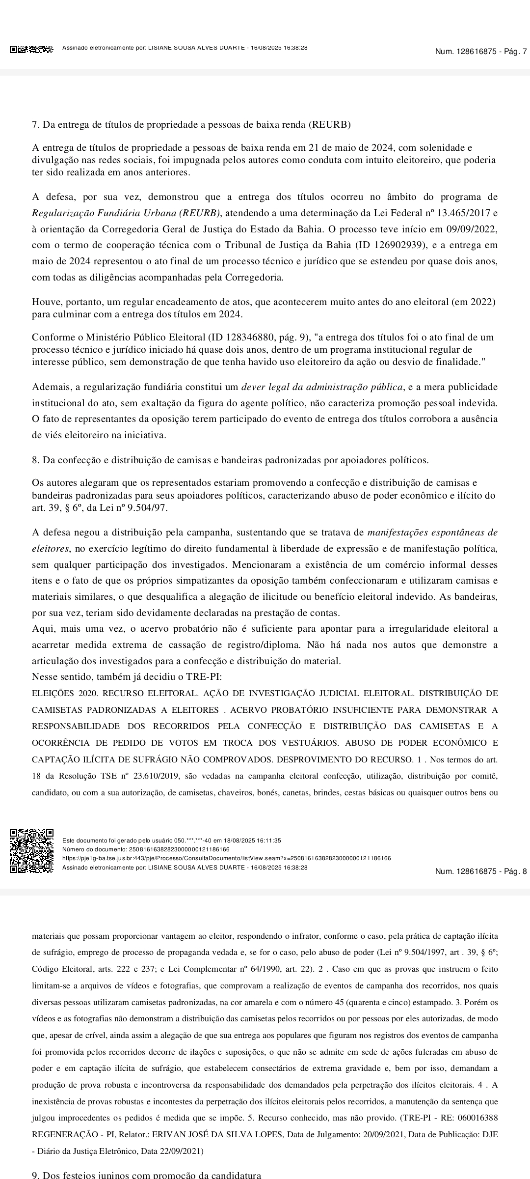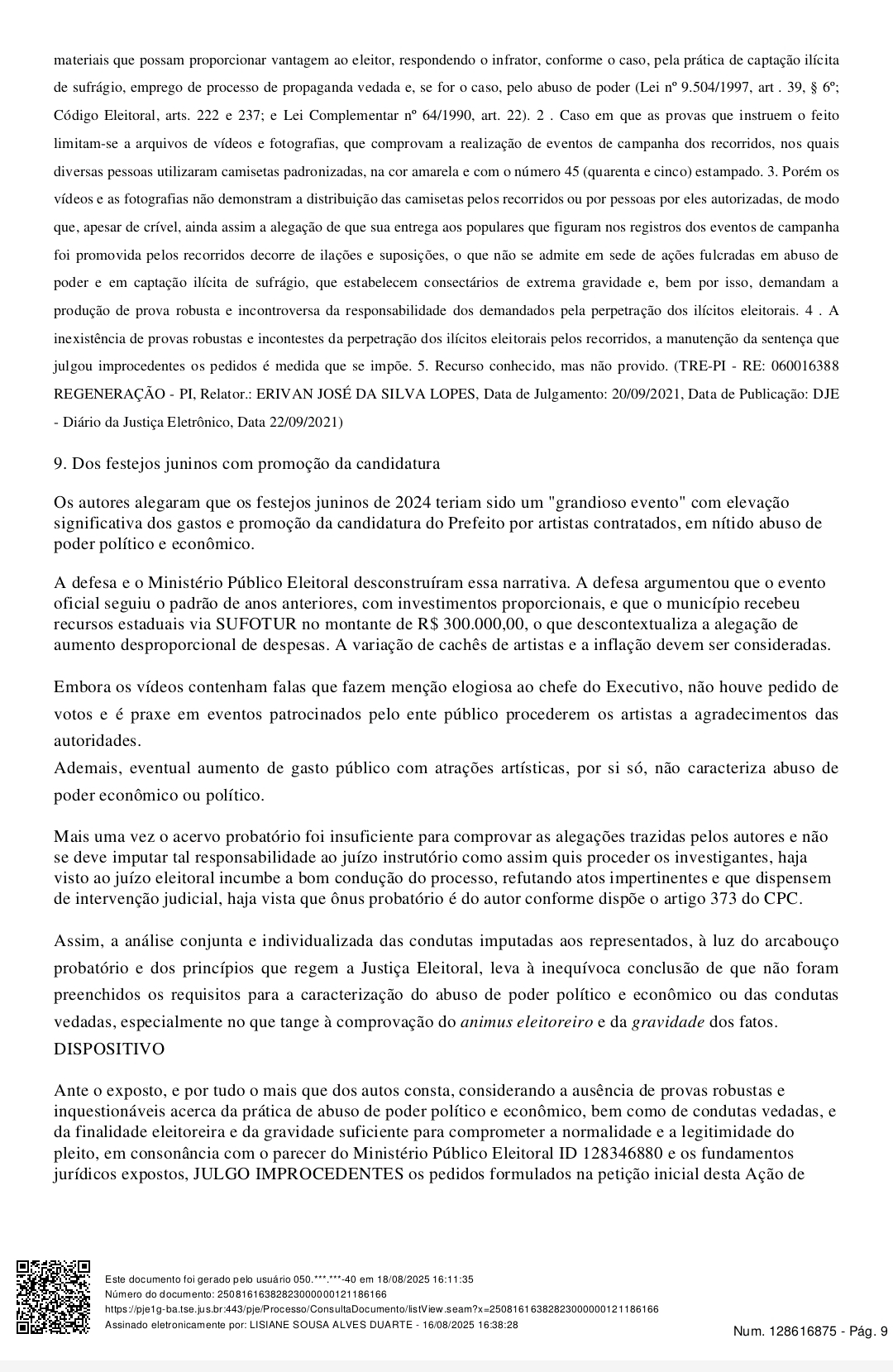 Na sentença, a magistrada destacou que não houve provas robustas que demonstrassem desvio de finalidade ou utilização da máquina pública em benefício da candidatura de Franklin Leite. Ela ressaltou que, para haver cassação de mandato, é necessário comprovar de forma inequívoca a prática de ilícitos eleitorais com potencial para influenciar no resultado do pleito.