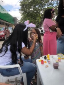 Para a criançada teve pintura, distribuição de doces, pipoca, e muitas brincadeiras. Kaio Gonzaga, de 8 anos, aproveitou bastante a cama elástica. “É muito bom ser criança, brincar, fazer amigos. Estou aproveitando bastante”, garantiu.