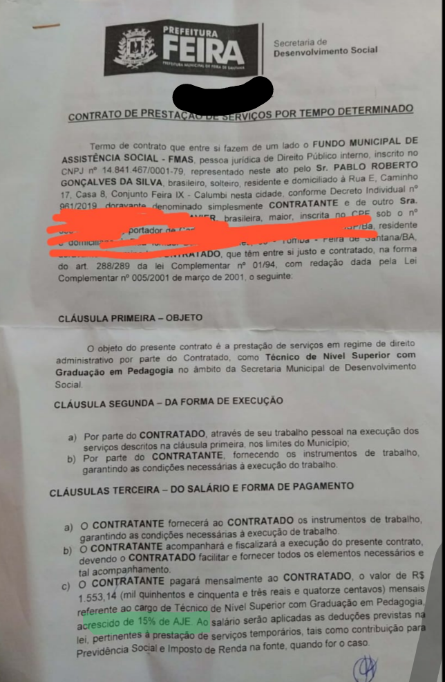 No contrato reza que: o servidor receberá um salário de R$ 1.553,14, acrescido de 15% de AJE. Os servidores ameaçam paralisação das atividades a partir do 5 de Abril, caso o governo não sinalize para o cumprimento do contrato. Eles ainda questionam o governo por estarem trabalhando sem sem vacina e sem EPIs.
