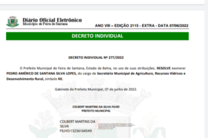 Secretario de Agricultura do Município de Feira de Santana, Pedro Américo foi exonerado na tarde desta terça-feira 07 em edição extraordinária do DO-Diário Ofícial da Prefeitura.