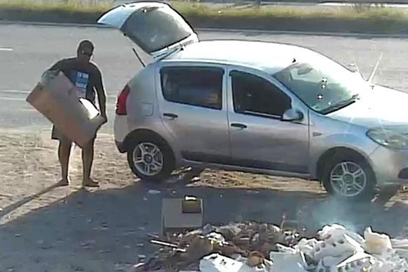 Um cidadão também foi flagrado descartando irregularmente resíduos sólidos/galhos de árvores em via pública, através de veículo, na Alameda Quatro, esquina com a Rua Araújo Pinho, bairro Olhos d’Água. Na mesma localidade, outro infrator foi identificado pelas câmeras de videomonitoramento e também recebeu auto de infração para pagamento de multa.